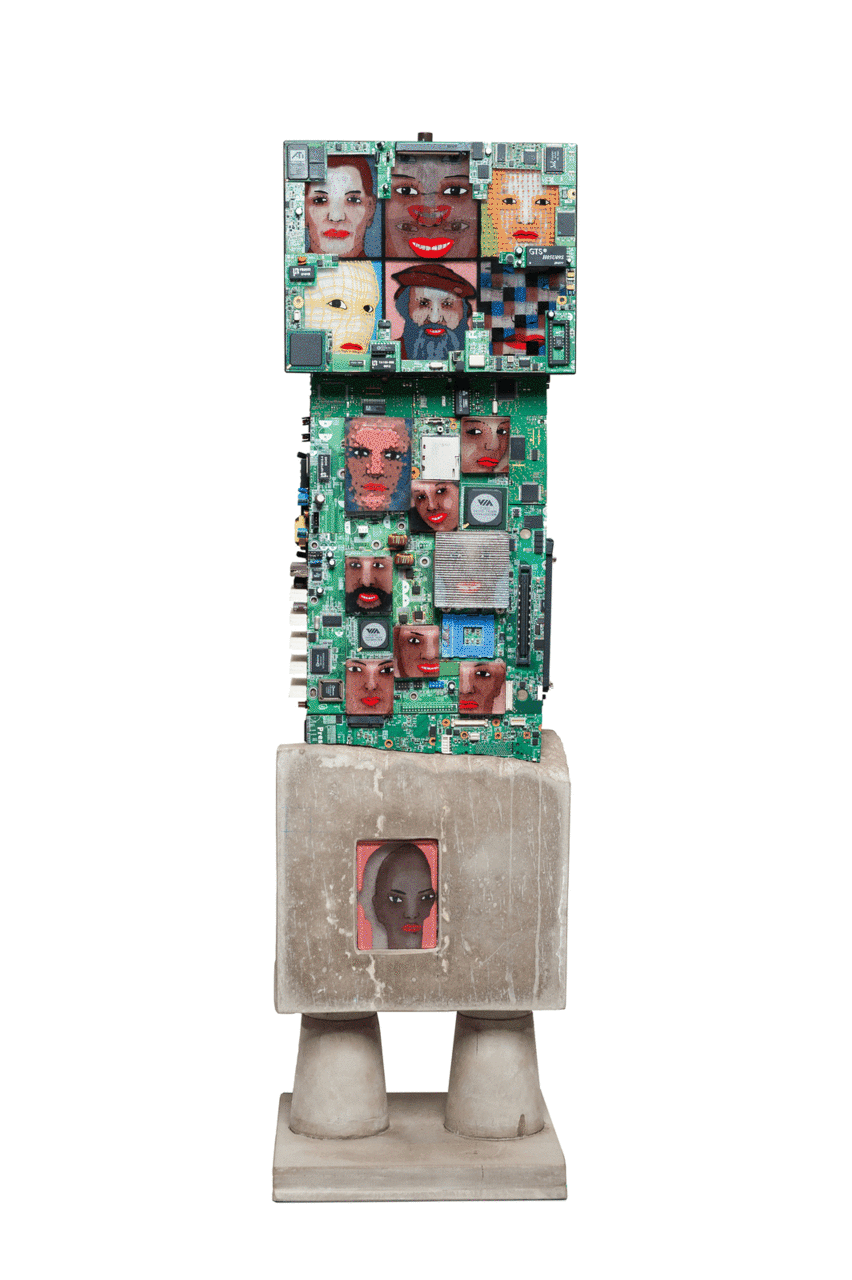The result is a complete installation that talks about the triumph of the virtual world and the success story of artificial intelligence,