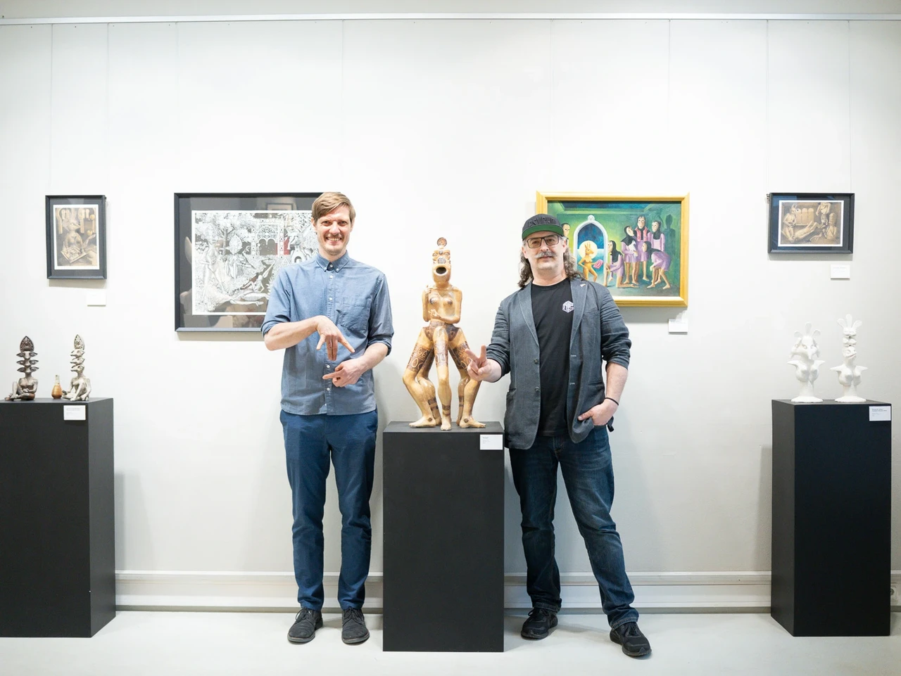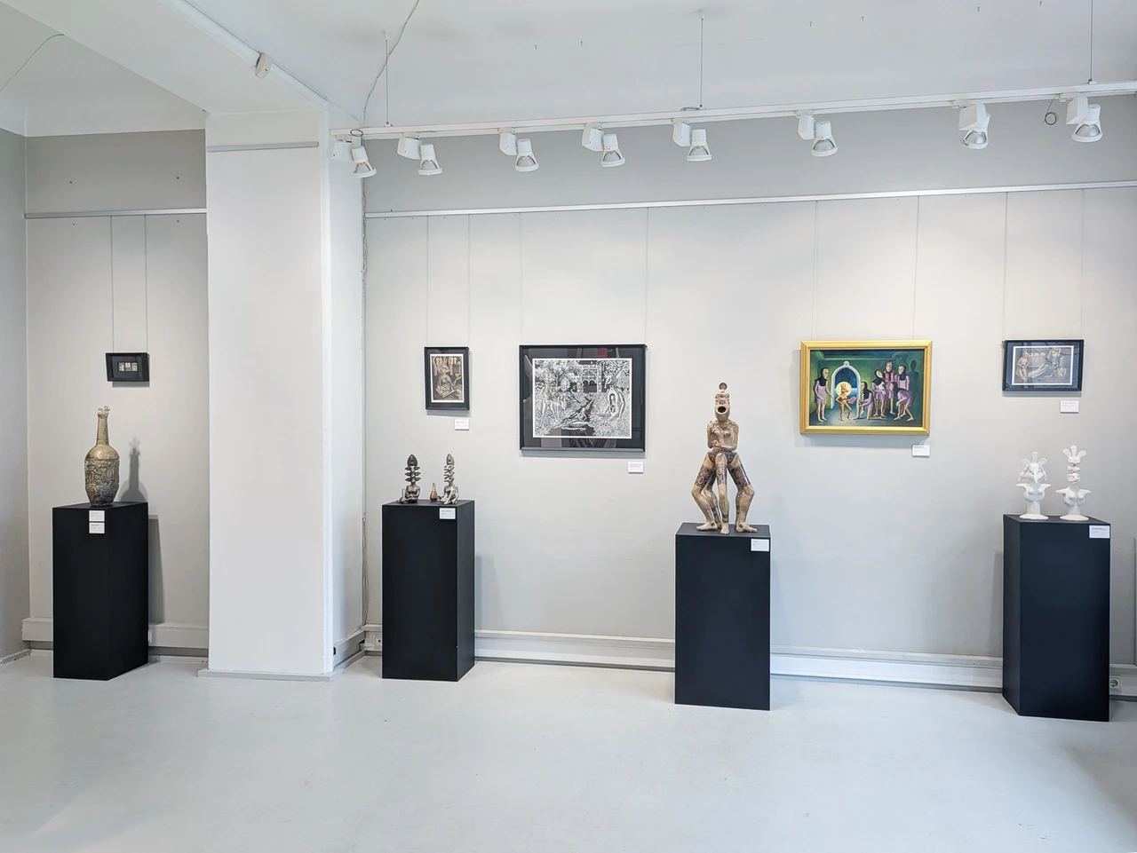 At the heart of the exhibition are graphic works and ceramic sculptures that tell stories of entities
