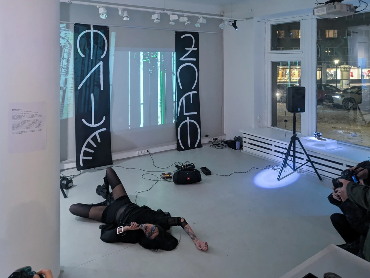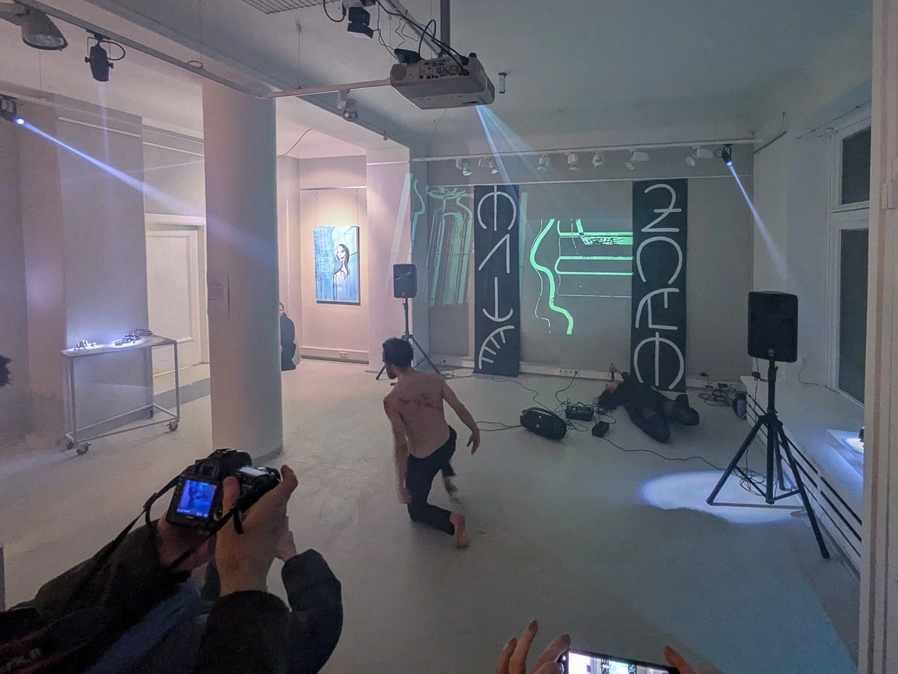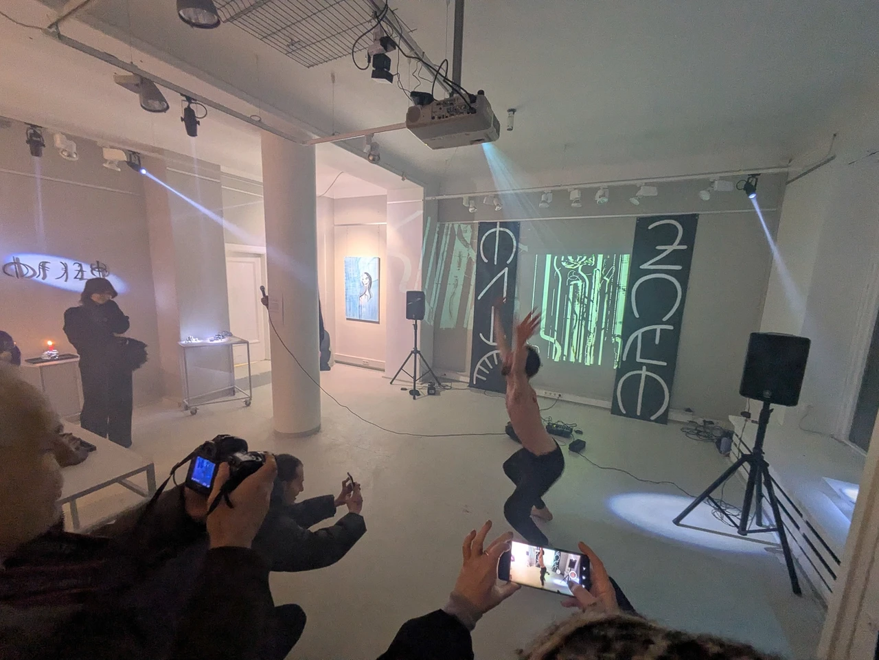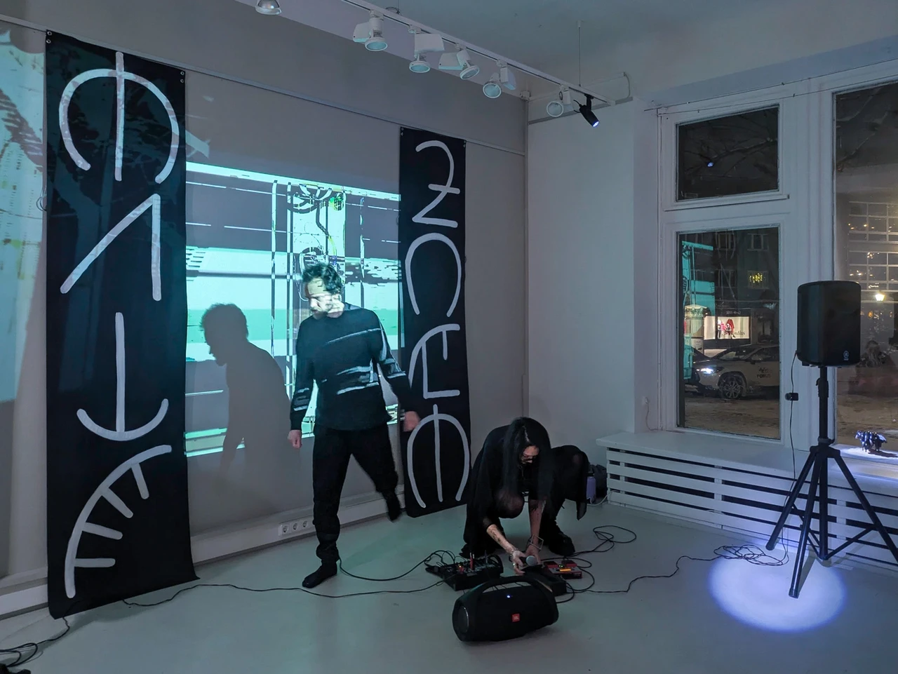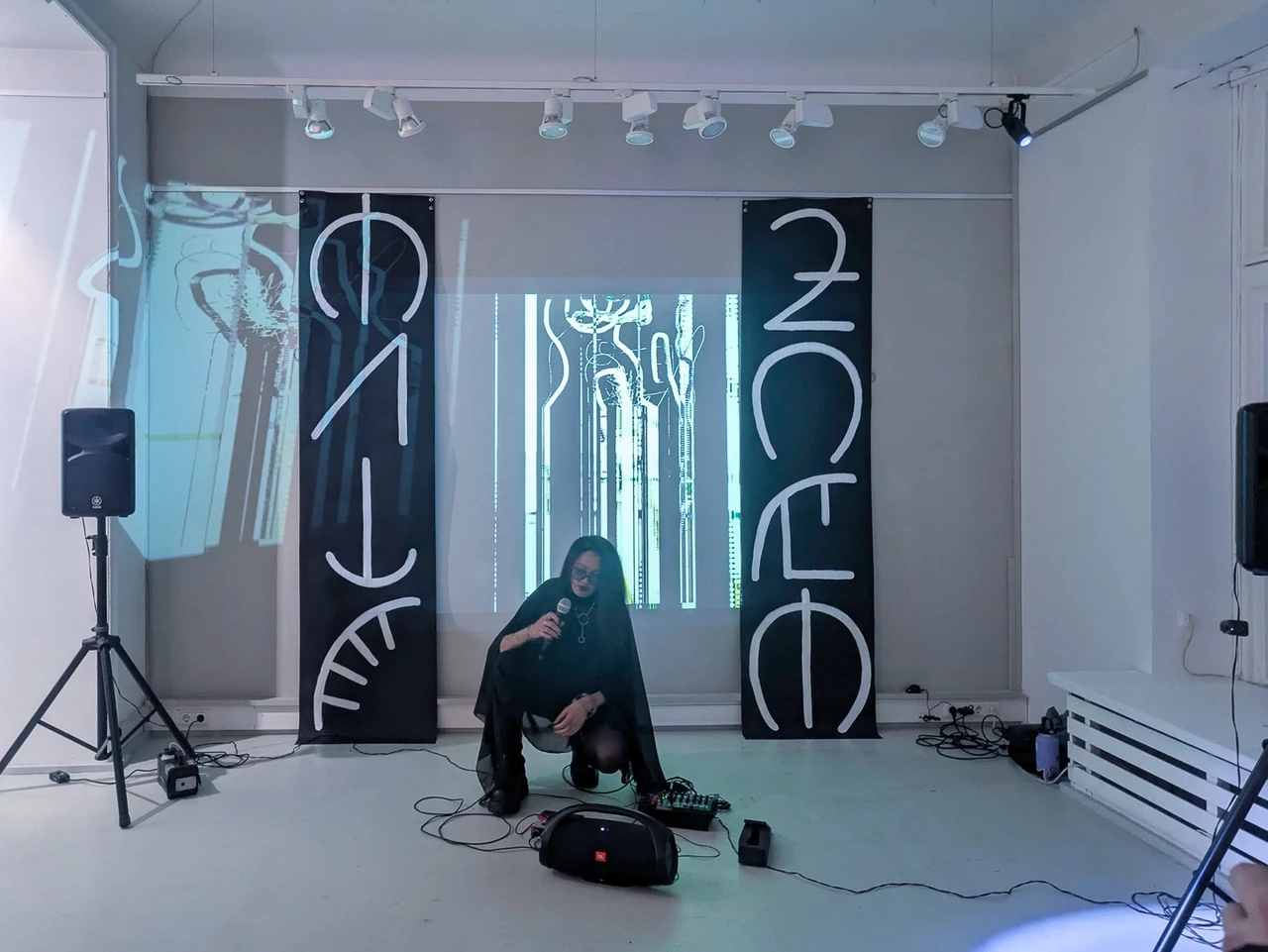 Video and sound carve an atmospheric perimeter, opening a field where identity becomes porous, where humans, ghosts, and imagined beings share the same space.